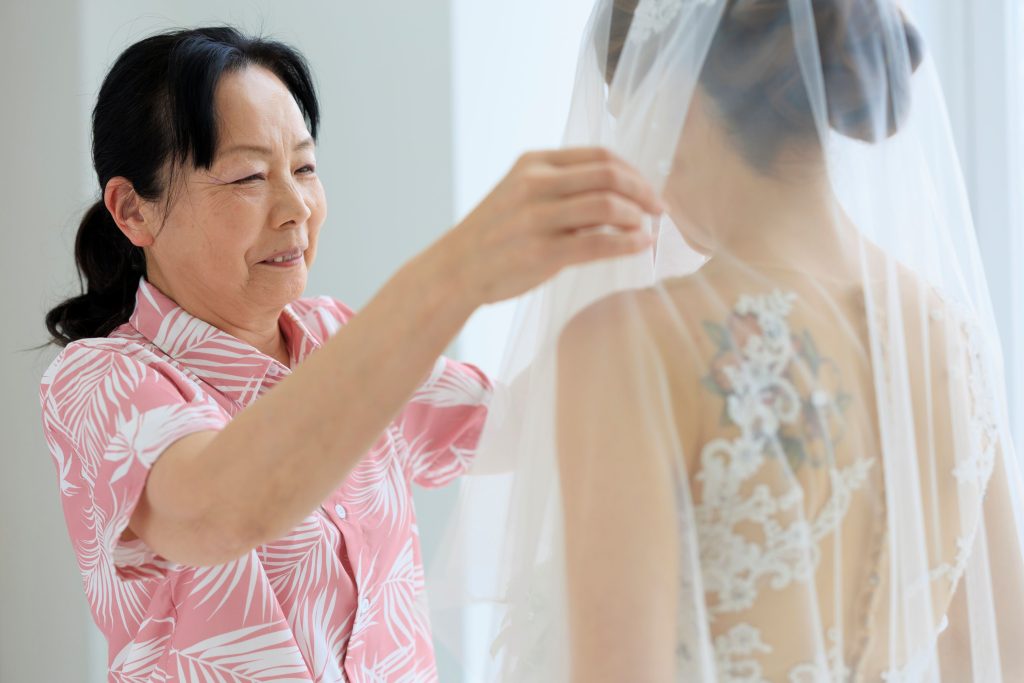 花嫁様の身支度の仕上げベールダウンのセレモニー