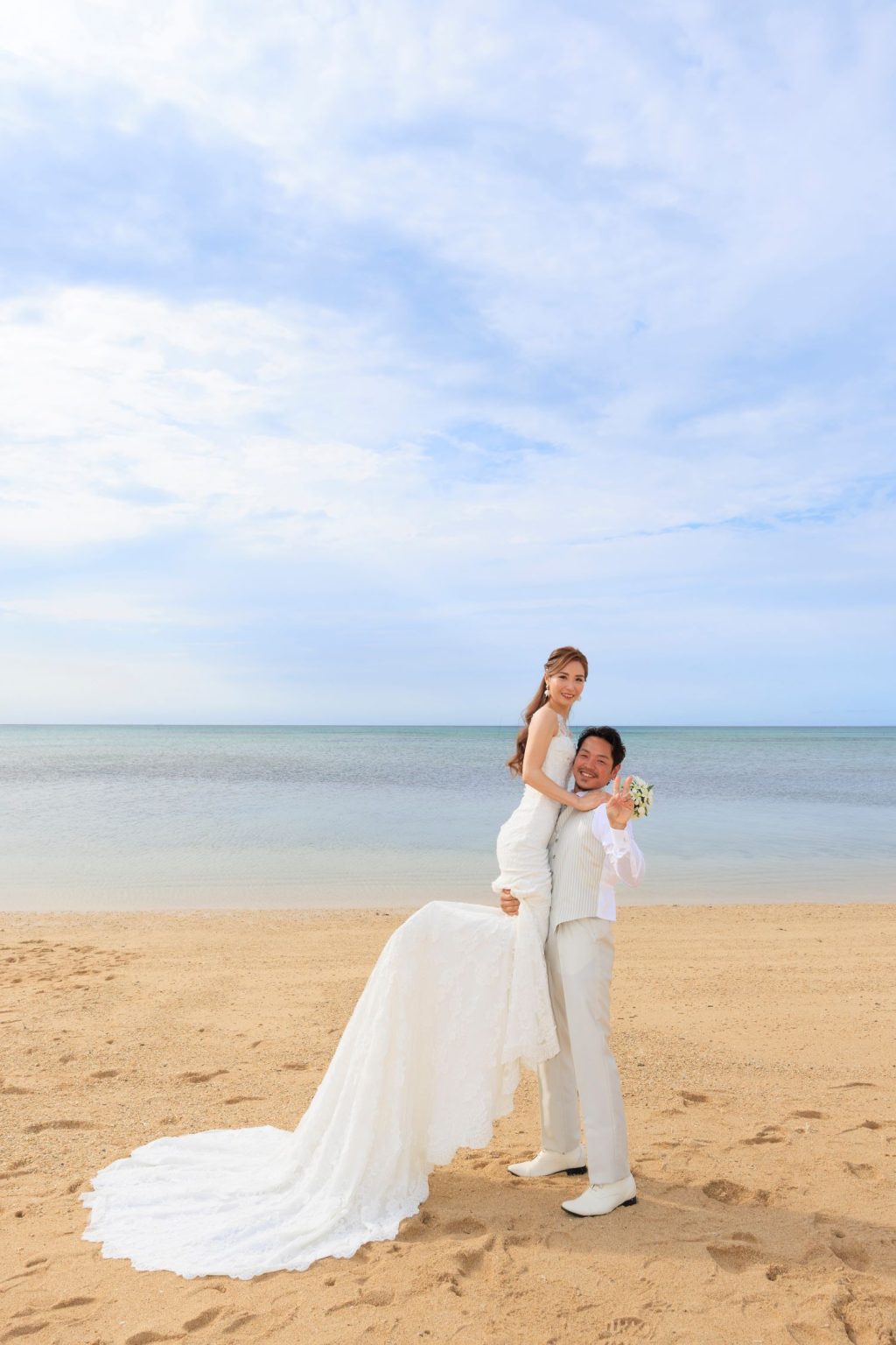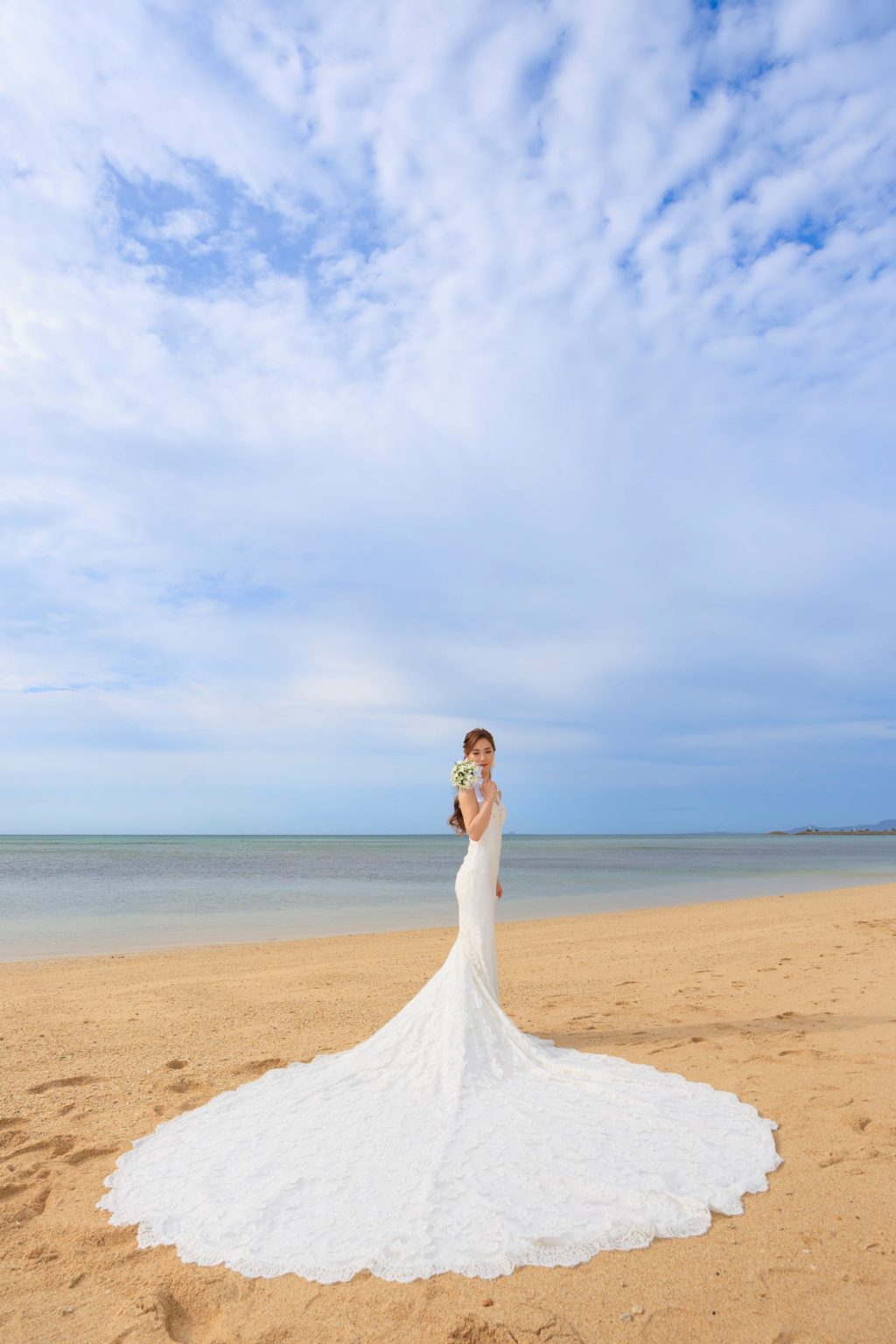青い海と空をバックに美しすぎる花嫁♪