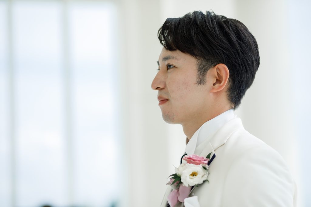 新郎様は、優し眼差しで待ち構えます