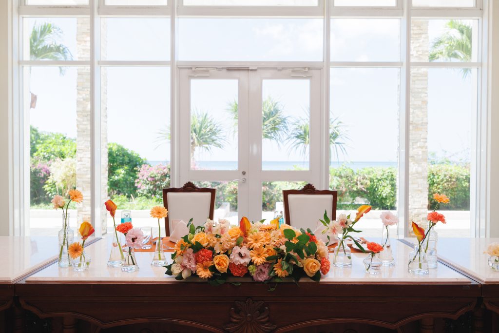 パーティー会場の装花は、オレンジにこだわり、