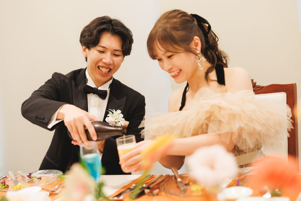 新婦様のグラスにビールを注いでくれる優しくて、