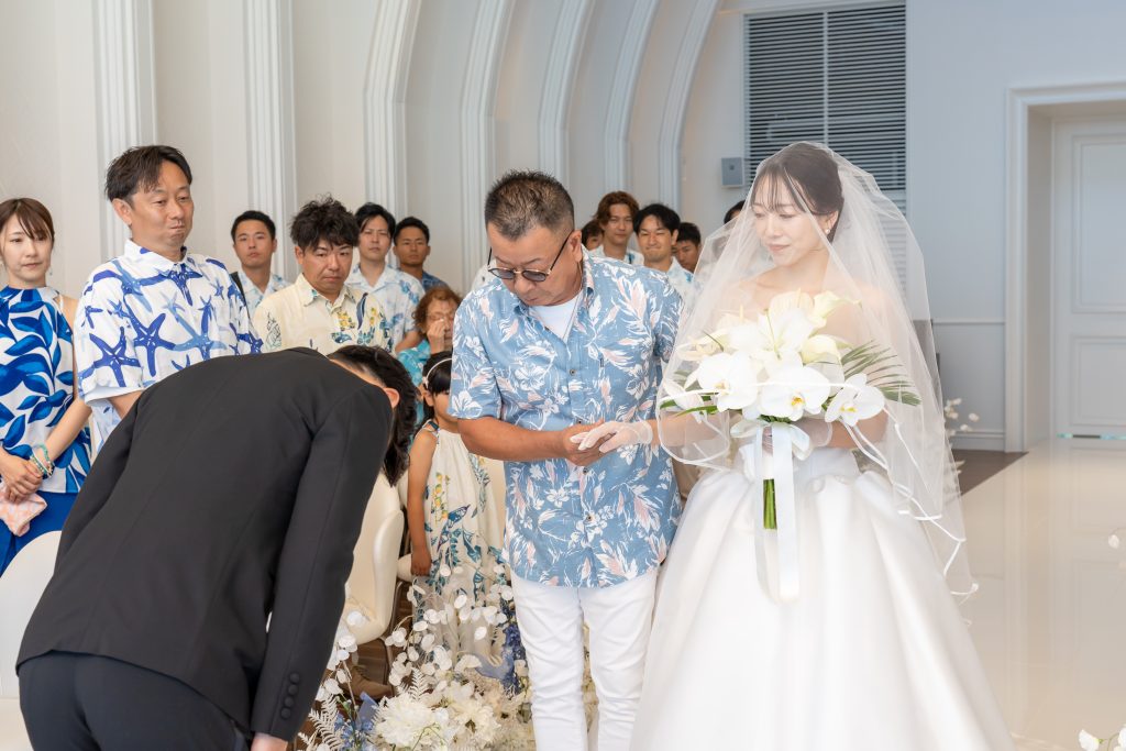 ご両親から新郎様へ、バトンタッチのシーンです。